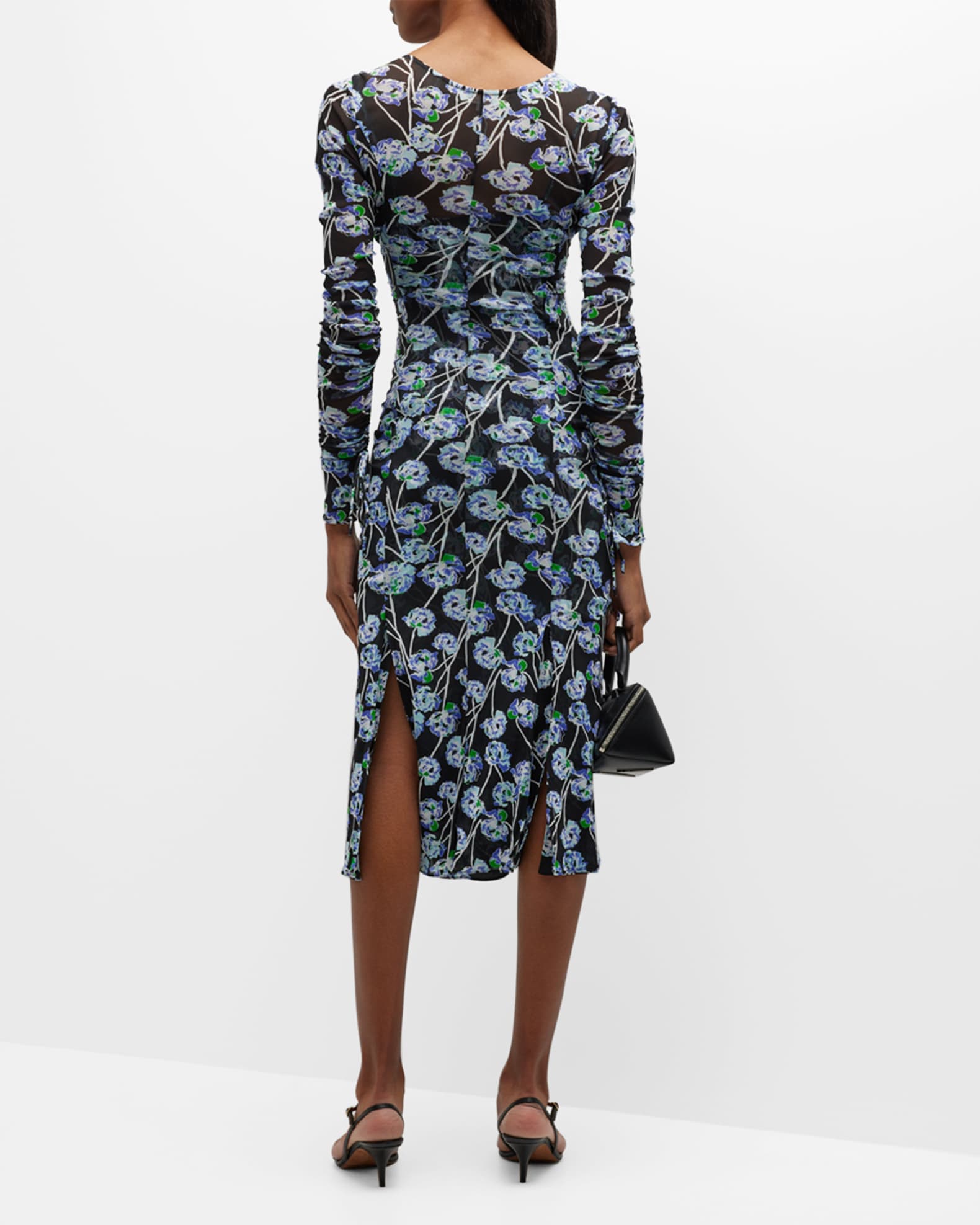 Diane Von Furstenberg Corinne Ruched Floral Print Mesh Midi Dress Neiman Marcus