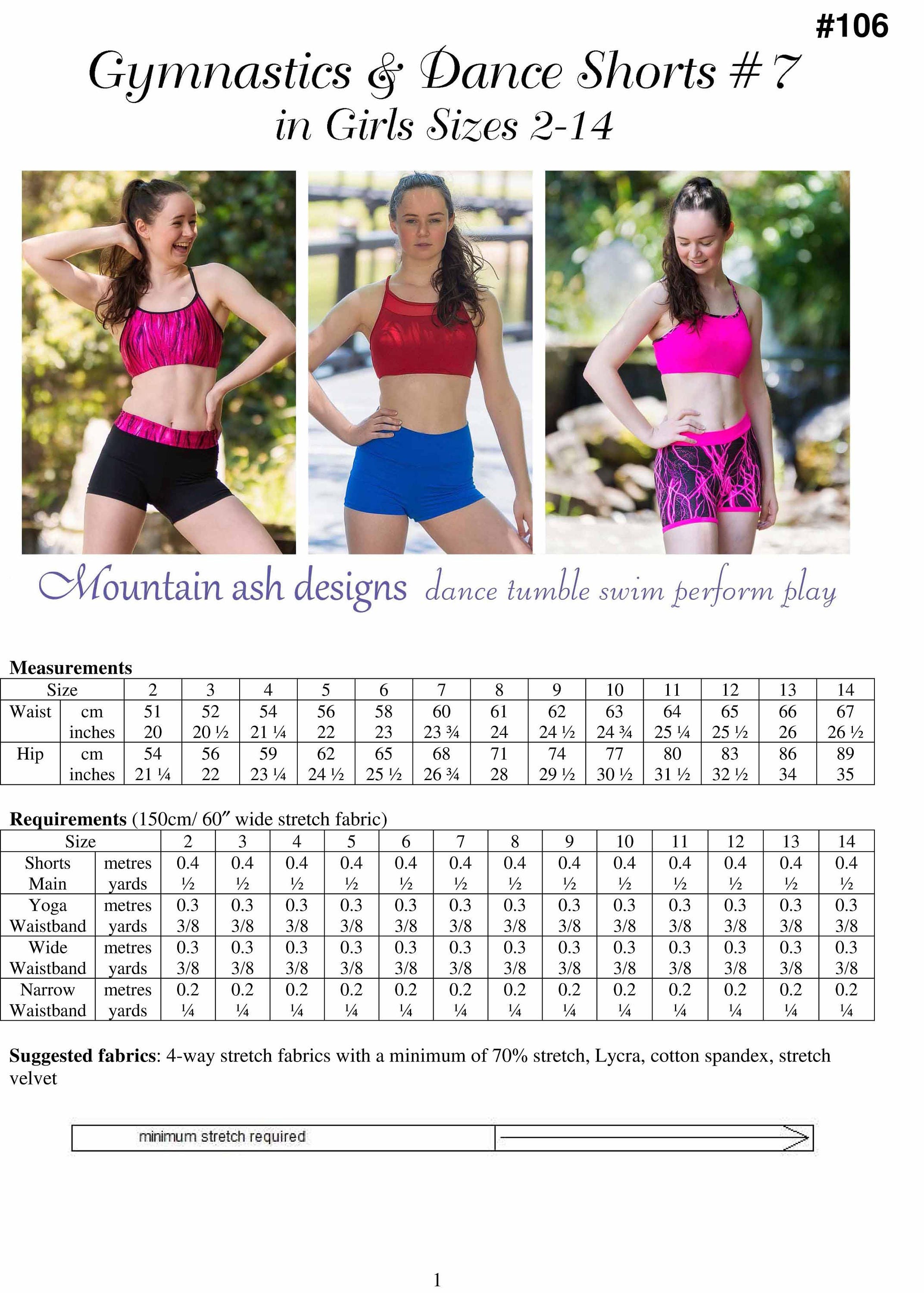 Gymnastics And Dance Shorts 3 Kids Sewing Pattern In Girls Sizes 2 14